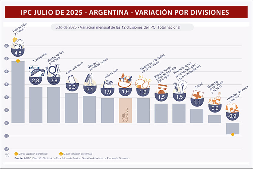 El Índice de Precios al Consumidor aumentó en julio 1,9%, según el INDEC