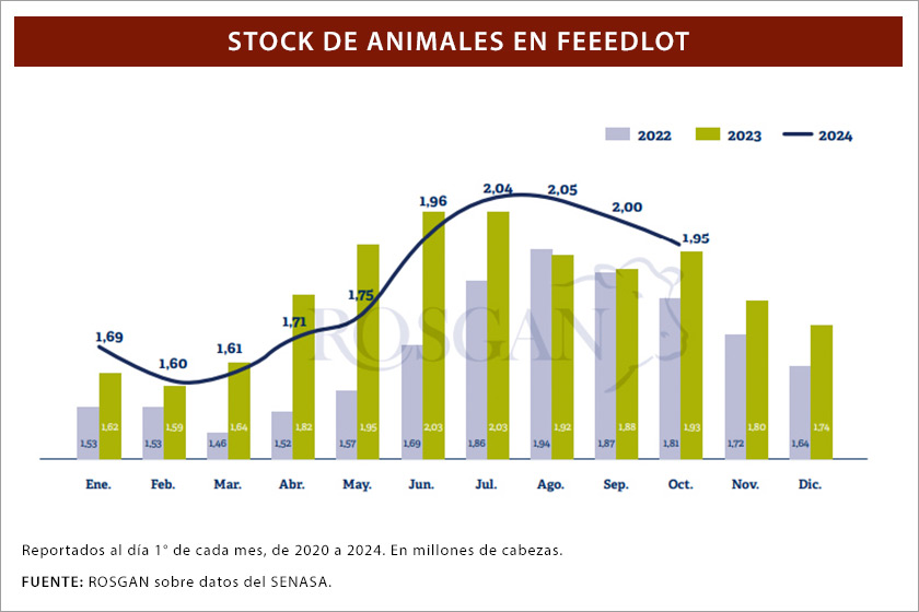 Recuerda, sí, que «en números absolutos, el nivel de encierre de los primeros meses -en particular del segundo trimestre del año- fue ampliamente superado por el 2023″, cuando se sintió la presión de la seca, que llevó a «concentrar y a anticipar el período de llenado» de los corrales de engorde.