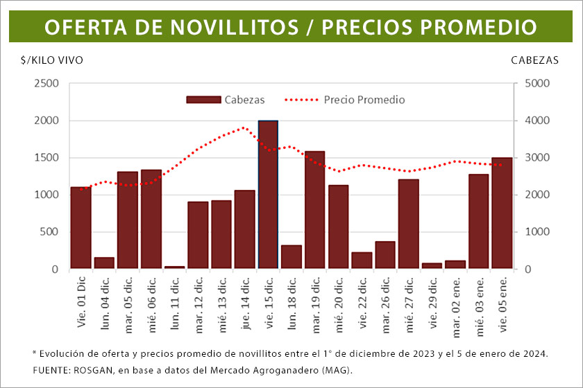 «Posteriormente, tras la devaluación, esta suba se terminó plasmando en precios del novillito trepando a casi los $2.000 el kilo. Esto generó alzas promedio de hasta el 50% que rápidamente impactaron en los mostradores con subas equivalentes en la semana previa a la Navidad», señala el reporte.