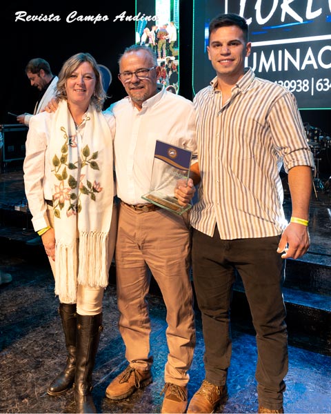¡A QUIEN NO LE GUSTA! Ivana Stefanazzi, Gabriel Corvalán y Facundo Corvalán reciben el Primer Premio que obtuvieron sus vaquillonas. ¡Bienvenida la plaqueta! Sobre todo porque, detrás de ella, está la valoración del Jurado Oficial del Concurso y los altos valores logrados por ese lote en el Remate… para quedar en la zona e integrarse al plantel de madres de uno de los mejores rodeos de cría de Mendoza. ¡Objetivo logrado! FOTO/ Revista Campo Andino & Agroindustria.