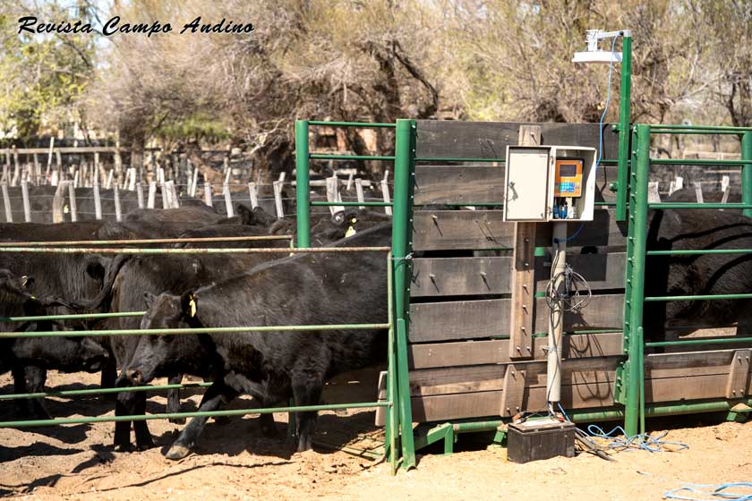 Hecha esa aclaración, podemos hablar, también, de lo que cuesta plata. En efecto, entre esa tecnología aplicada que sirve al propósito de la ganadería de precisión, en La Marina están probando una balanza al paso, que es un prototipo… que está en desarrollo. Permite recoger -cuando el animal pasa por la báscula- la información contenida en la caravana electrónica que tiene colocada cada ejemplar.