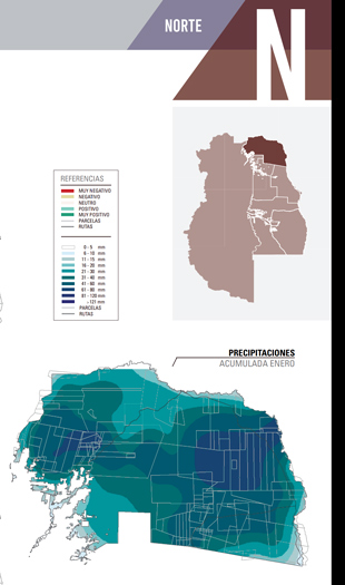 Mora puntualizó, por otra parte, que “a este informe se le incorpora una referencia a las precipitaciones registradas en el mismo período (también a partir de sensores remotos que estiman precipitaciones), como información adicional a la que surge de estimar las anomalías del índice verde”.