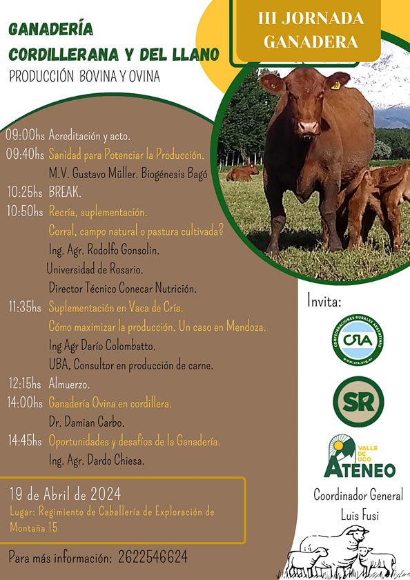 La Sociedad Rural del Valle de Uco (Mendoza), convocó para el mes próximo a su Tercera Jornada Ganadera, con una agenda que -tanto por su contenido como por el enfoque- enriquece el temario abordado en las dos primeras ediciones.