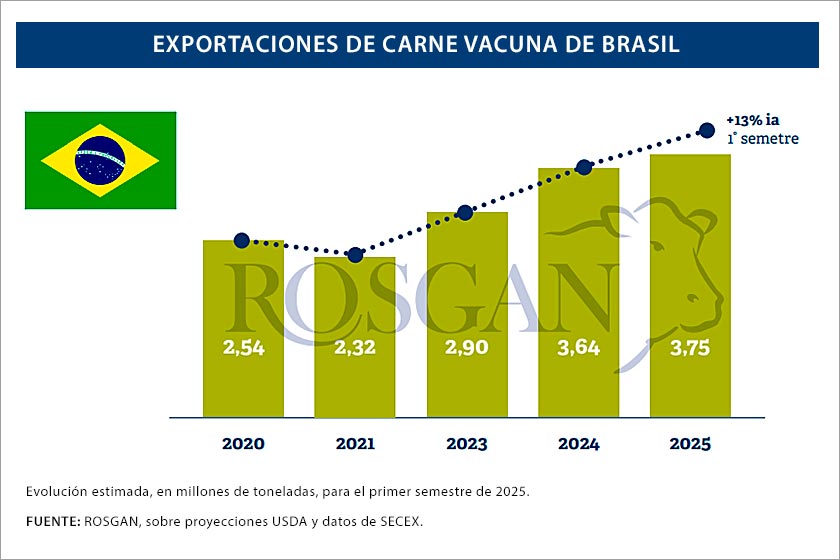 Esa estimación «llevaría el volumen total a unos 3,75 millones de toneladas en 2025; pero lo cierto es que, en la primera mitad del año, Brasil superó ampliamente esas expectativas».
