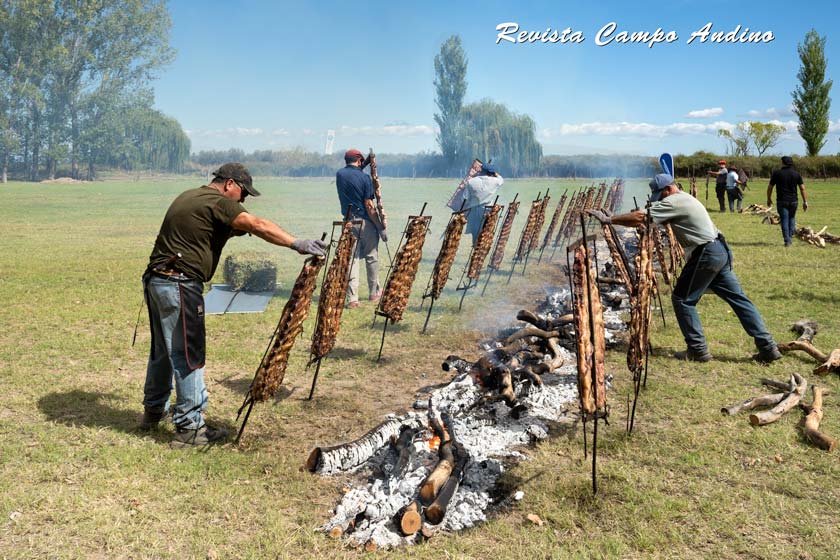 PROTAGONISTAS indiscutidos, los costillares a la cruz ocuparon el centro de la escena este fin de semana en Soitué (San Rafael). Unas 400 personas se dieron cita en el establecimiento de Agropecuaria Los Huarpes, donde tuvo lugar el Día de Campo de los ganaderos sureños. FOTO / Revista Campo Andino & Agroindustria.