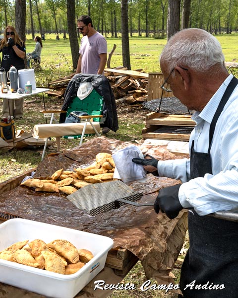 TORTAS FRITAS y mate cocido (junto a algún trago «espirituoso» al que muy pocos se le animaron, pero… ahí estaba) compensaban el fresco de la mañana. Más allá, una generosa reserva de leña para calentar las ollas y asar la carne que, dicho sea de paso, sería aromatizada (en el momento oportuno) con ramas de jarilla arrojadas sobre las llamas. FOTOS / Revista Campo Andino & Agroindustria.