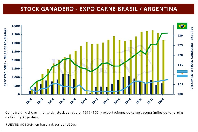 Subraya que logró esto «sobre la base de un crecimiento y mejoramiento sostenido de su stock ganadero, que le permitió atender su mercado interno mientras apostaba fuertemente al desarrollo de la exportación» .